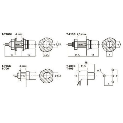 Gniazdo montażowe RCA - Monacor T-710GI