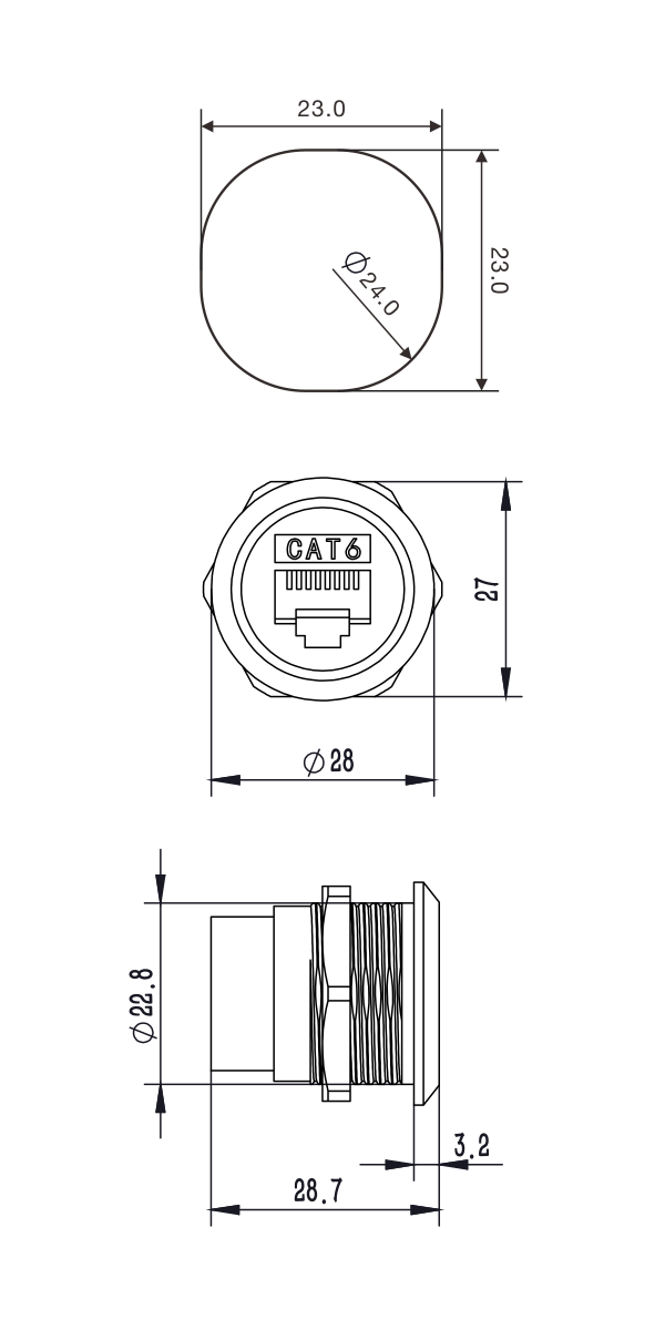 • Przelotowy adapter RJ45 (CAT6), obudowa niklowana