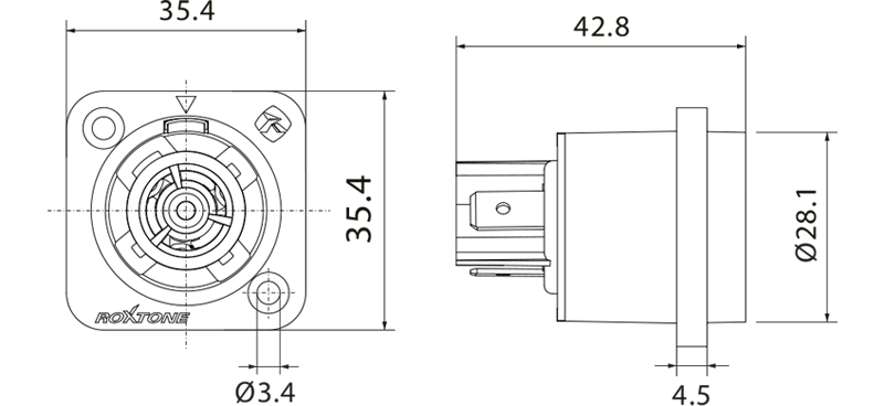 Gniazdo zasilania panelowe - ROXTONE RAC3FPWP IP65
