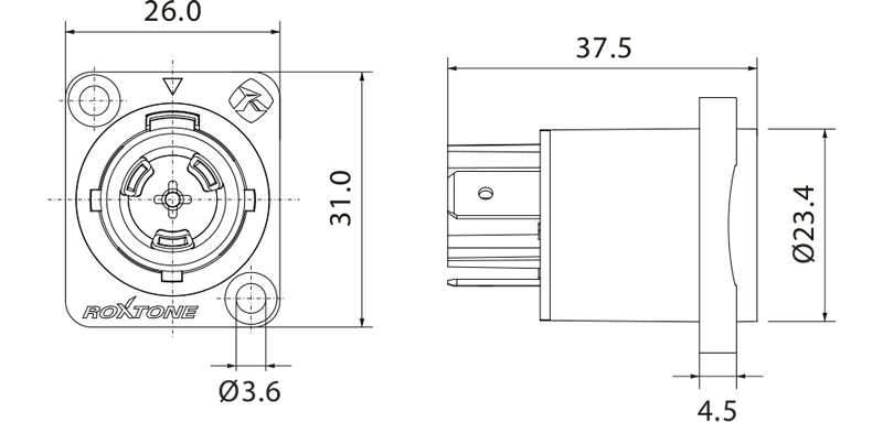 Gniazdo zasilania panelowe - ROXTONE RAC3MPWP IP65