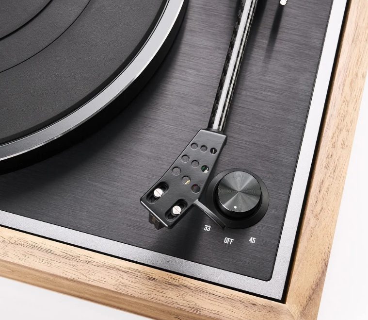 - Węglowe ramię gramofonowe z bezpośrednim prowadzeniem przewodów, fabrycznie wyposażone w wkładkę Ortofon 2M Black