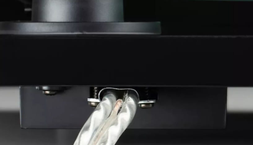 Stylowa, frezowana drewniana podstawa nie zawiera żadnych plastikowych części i jest starannie wykonana, aby zapewnić brak pustych przestrzeni wewnątrz, a tym samym uniknąć niepożądanych wibracji w obudowie. Kontynuując tę filozofię w projekcie, szklany talerz jest również ciężki, o zerowym współczynniku rezonowania – ponownie unikając wad plastikowych lub lekkich stalowych alternatyw.