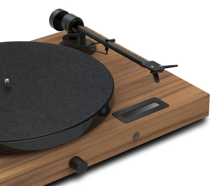 Prawdziwie audiofilski gramofon typu All-in-One z wyświetlaczem o wysokim kontraście, wbudowanym przedwzmacniaczem gramofonowym, odbiornikiem Bluetooth i wzmacniaczem stereo. Juke Box E1 został fabrycznie wyposażony we wkładkę gramofonową Ortofon OM 5E typu MM ze wstępnie ustawioną siłą śledzenia i anty-skatingiem.