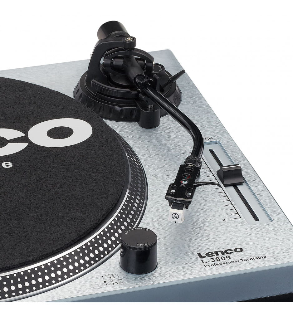 Nowa odsłona gramofonu L-3809 wyróżnia się wyjątkowym wykończeniem przypominającym szczotkowane aluminium. Doskonałą jakość odtwarzania gwarantuje fabrycznie zainstalowana wkładka Audio-Technica AT3600 oraz ciężki aluminiowy talerz.