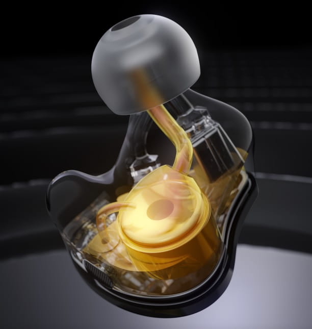W celu osiągnięcia maksymalnej wydajności oraz aby wytwarzać naturalny dźwięk na wszystkich częstotliwościach, zdecydowaliśmy się skorzystać z bardzo precyzyjnego druku 3D, tworząc trzy niezależne komory, z których każda mieści przetworniki obsługujące określony zestaw częstotliwości w celu zmniejszenia zakłóceń między różnymi przetwornikami, zmniejszając w ten sposób zniekształcenia.