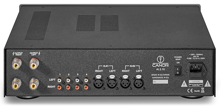 Canor AI 2.10 to wysokiej jakości hybrydowy wzmacniacz zintegrowany o mocy wyjściowej 2x 150 W przy 4 Ω. Jego konstrukcja wywodzi się z najwyższej linii produktów Canor Audio. Składa się z przedwzmacniacza lampowego na wejściu wyposażonego w precyzyjny potencjometr oparty na przekaźnikach. Canor AI 2.10 został zaprojektowany symetrycznie, zapewniając idealną zbieżność i dobrą separację między lewym oraz prawym kanałem.