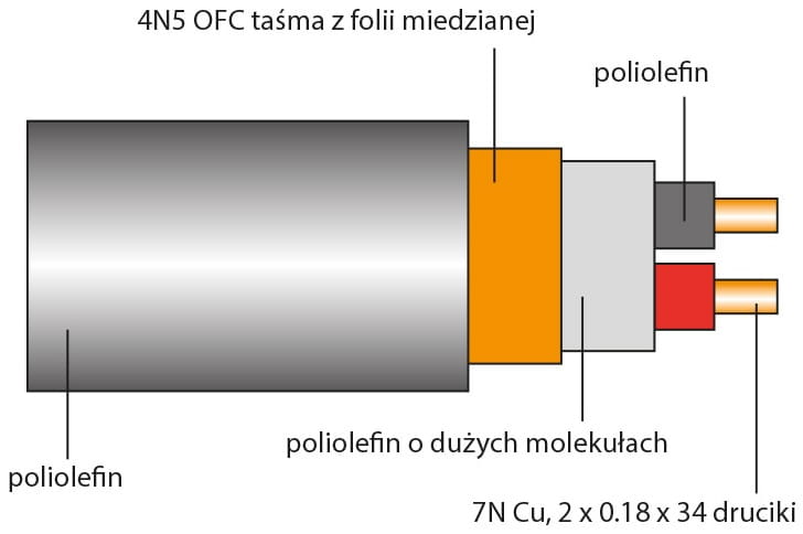 Najważniejsze cechy: • materiały o wysokiej czystości • poziom czystości osiągany jest przy zastosowaniu techniki analizy materiałowej GD-M • przewody wykonywane są w technologii odlewania Stressfree • technologia D.U.C.C. • ekran wykonano z miedzianej folii oraz plecionki z miedzi OFC 4N5