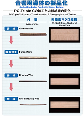 PC-TripleC (Pure Copper-Continuous Crystal Construction) to pierwszy na świecie specjalistyczny przewodnik audio wykonany przy użyciu przełomowych technologii. PC-TripleC nie generuje impedancji, gdy prąd płynie w miedzi o wysokiej czystości, takiej jak 6N i w kierunku wzdłużnym. To nowy przewodnik do wykorzystania audio ze wszystkich aspektów.