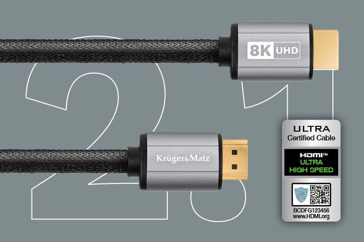 Teraz dostrzeżesz każdy szczegół! Przewód HDMI 2.1 Kruger&Matz umożliwia wyświetlanie obrazu w rozdzielczościach 8K przy 60 Hz oraz 4K przy 120 Hz. Przejdź na zupełnie inny poziom wrażeń podczas oglądania filmów i grania w gry na konsoli.