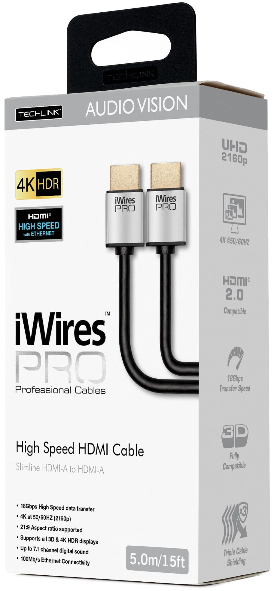 Dzięki szybkiemu połączeniu o prędkości 18 Gb/s, przesyłając obrazy o rozdzielczości 4K HDR do 60 Hz, kabel iWires Pro HDMI jest idealnym rozwiązaniem zapewniającym najwyższą jakość obrazu.