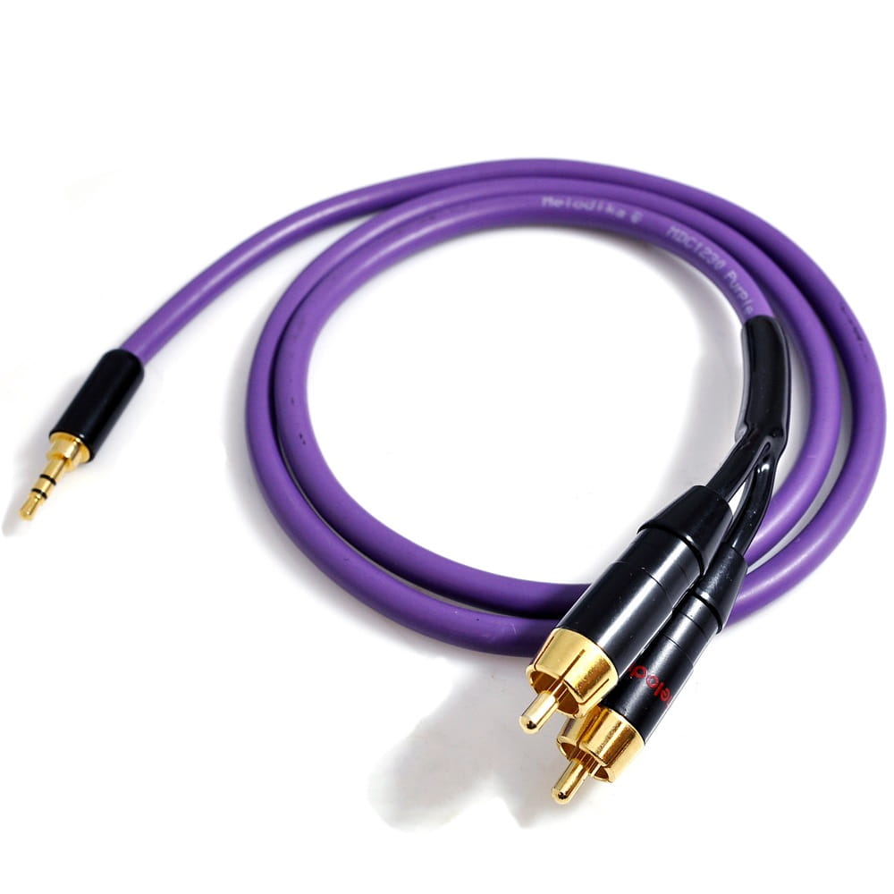 Wysokiej jakości przewód Jack 3.5mm x 2RCA (chinch) renomowanej, polskiej marki Melodika specjalizującej się w okablowaniach oraz kolumnach głośnikowych.