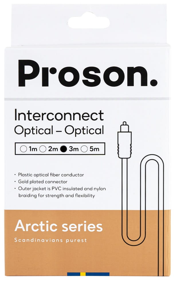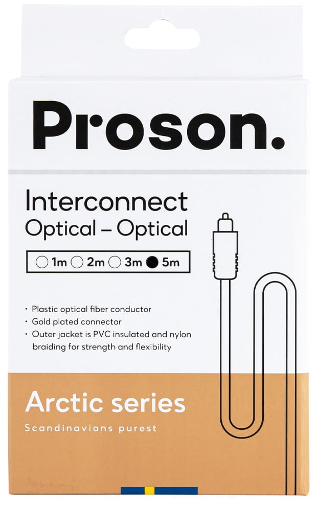 Proson Arctic to stylowy kabel optyczny z plecioną powierzchnią zewnętrzną, który przenosi domowe okablowanie na wyższy poziom! Ochronna obudowa zewnętrzna wykonana z PCV chroni przed zakłóceniami. Kabel prawdziwej jakości w przystępnej cenie szwedzkiej firmy Proson.