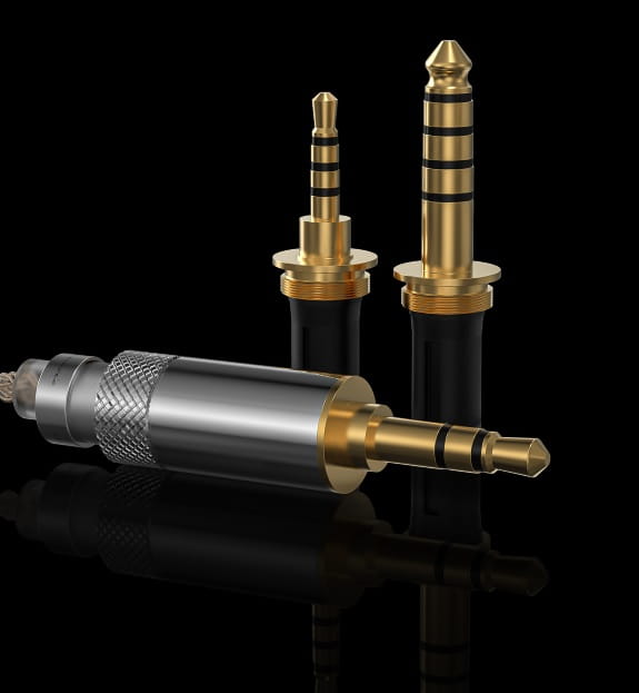 LC-RE Pro 2022 jest wyposażony w wymienne wtyczki audio typu twist-lock, umożliwiające łatwą zmianę między złączami 3,5 mm single-ended/2,5 mm/zbalansowanymi 4,4 mm w zależności od potrzeb w celu podłączenia do źródła dźwięku.