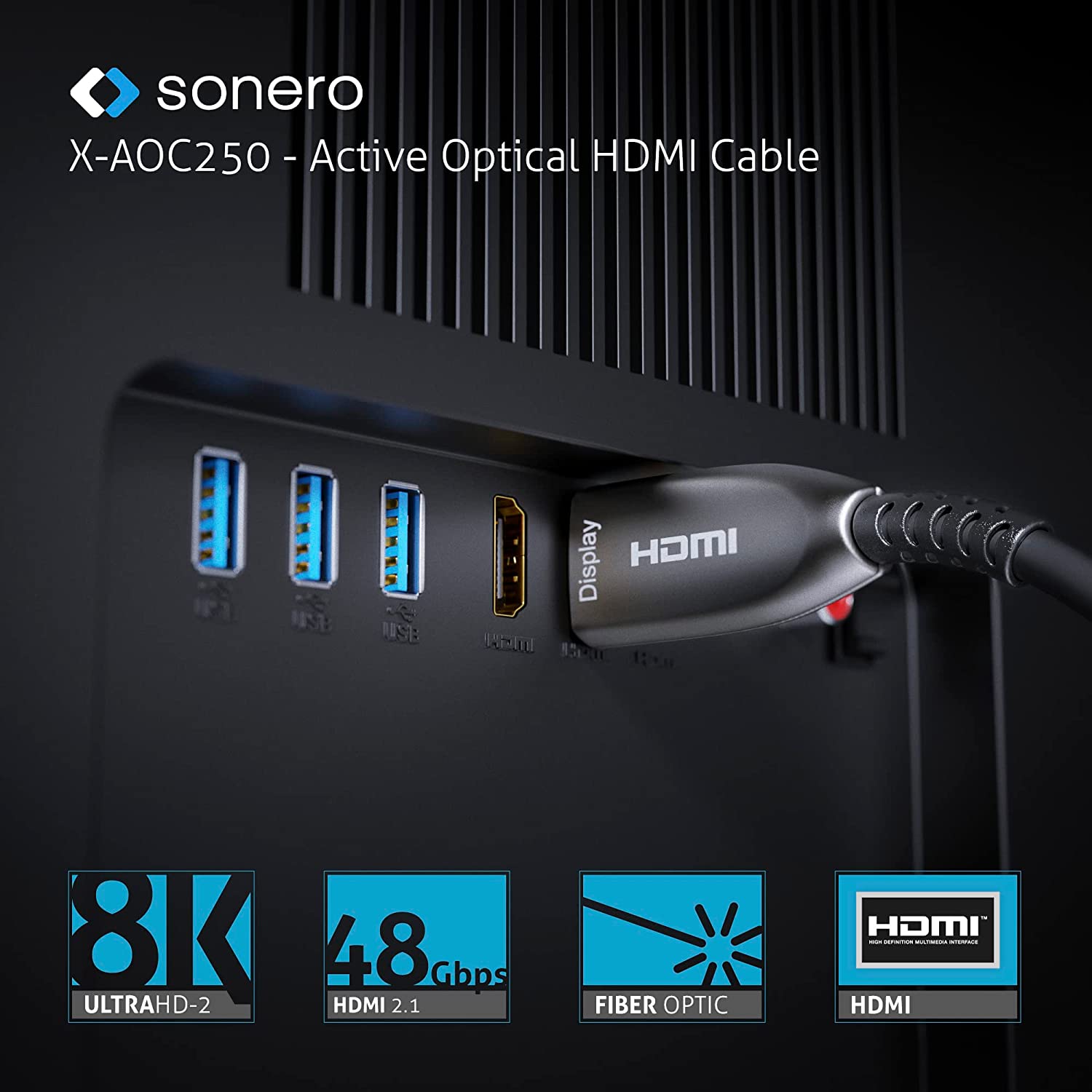 Kabel światłowodowy Hybrid HDMI 2.1 8K 48Gbps - Sonero XAOC250-300 30m | RATY 0% | SALA ODSŁUCHOWA POZNAŃ