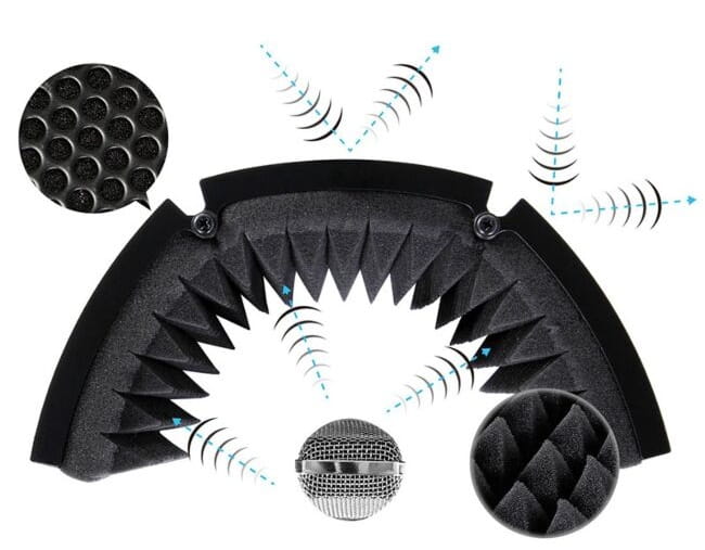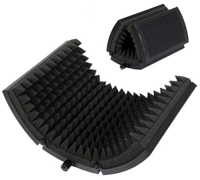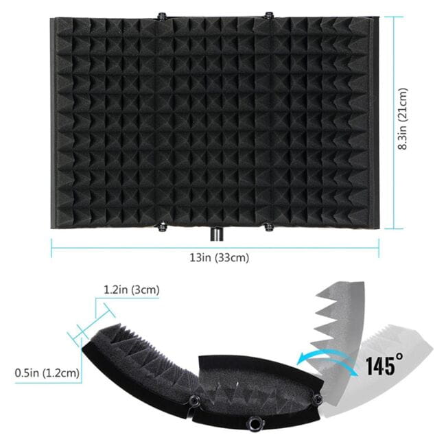 To przede wszystkim odpowiedni kształt i powierzchnia pochłaniająca dźwięk. ✅ Ekran dźwiękowy AC1 posiada 3 panele dźwiękochłonne, w tym 2 składane, umożliwiające profilowanie kurtyny akustycznej. Od strony wewnętrznej pokryty został grubą gąbką techniczną, która izoluje mikrofon od otoczenia i skutecznie tłumi wszelkie refleksy. Kabina mocowana jest do statywu za pomocą solidnej, metalowej ramy wyposażonej w prowadnice. Dzięki nim AC1 posiada ✅ regulację odległości względem pozycji mikrofonu, dlatego może być ustawiony tak, żeby maksymalnie niwelować wszelkie odbicia i pogłosy powstające podczas nagrywania.
