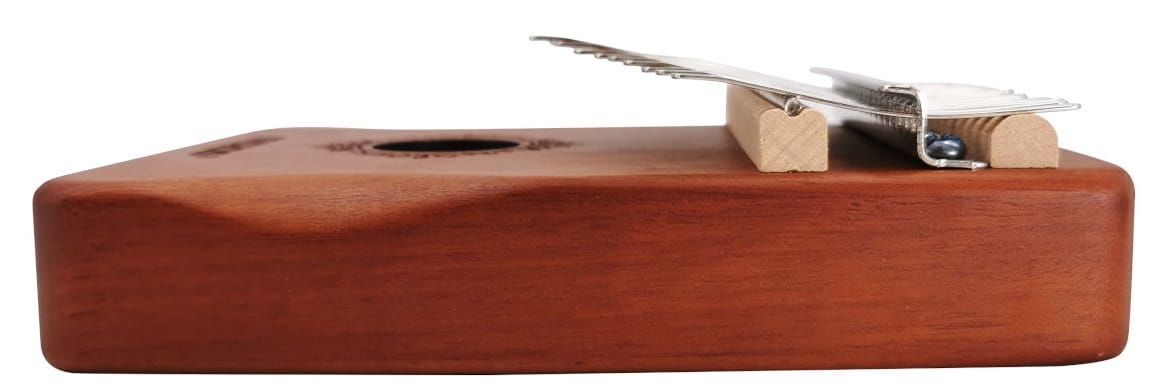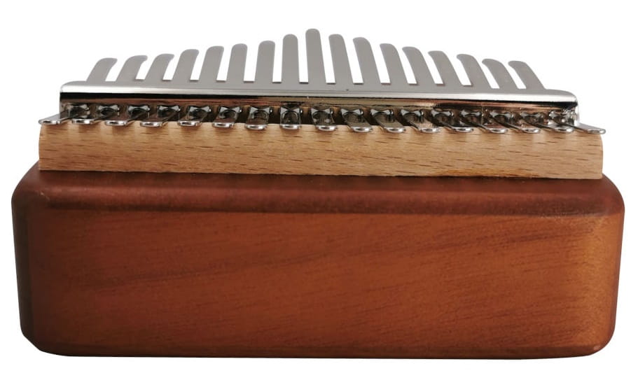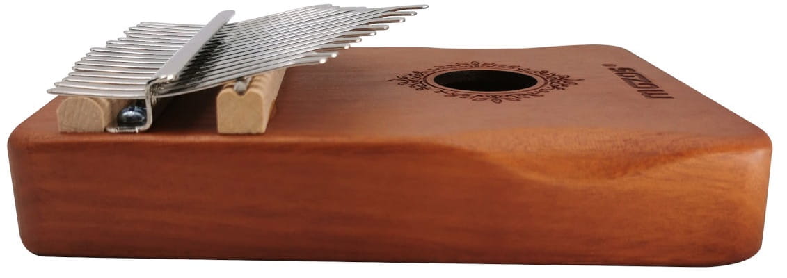 Instrument który swoim oryginalnym kształtem i brzmieniem odróżnia się od wszystkich pozostałych tego typu produktów. Wysokiej jakości drewniana skrzynia rezonansowa, wykonana z wysokogatunkowego, litego mahoniu z 17 klawiszami od polskiego producenta produktów audio. Kalimby używa się trzymając instrument w obu dłoniach, naciskając kciukami na odpowiednie klawisze. Atrakcyjne i intrygujący prezent dla dzieci i dorosłych. Odpowiednie do edukacji muzycznej dla każdej grupy wiekowej. Świetnie też sprawdza się w muzycznej terapii. W zestawie znajduje się oprócz samego instrumentu: naklejki, nakładki na palce, młoteczek do strojenia, ściereczek do czyszczenia oraz instrukcja.