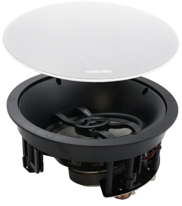 Niezależny od stalowego kosza głośnika, pierścień montażowy z łapami blokującymi skutecznie redukuje rezonanse przenoszone między głośnikiem a ścianą, co eliminuje niepożądane wibracje.