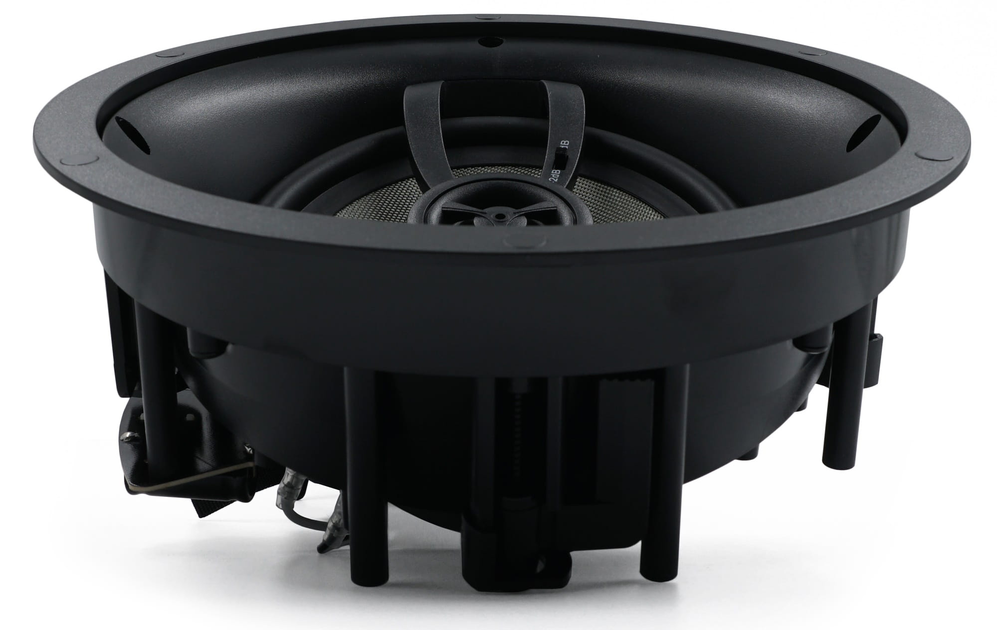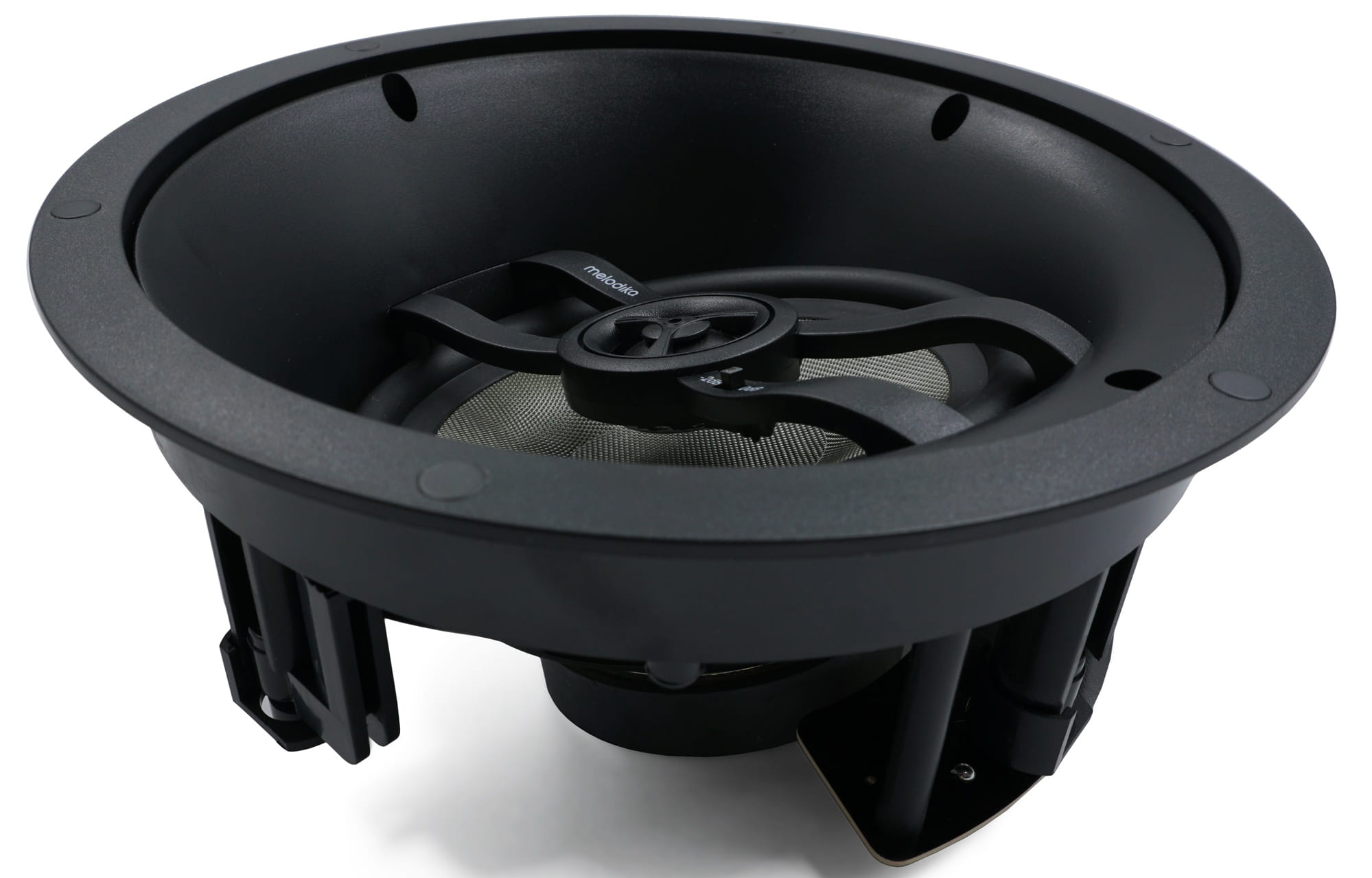 Niezależny od stalowego kosza głośnika, pierścień montażowy z łapami blokującymi skutecznie redukuje rezonanse przenoszone między głośnikiem a ścianą, co eliminuje niepożądane wibracje.