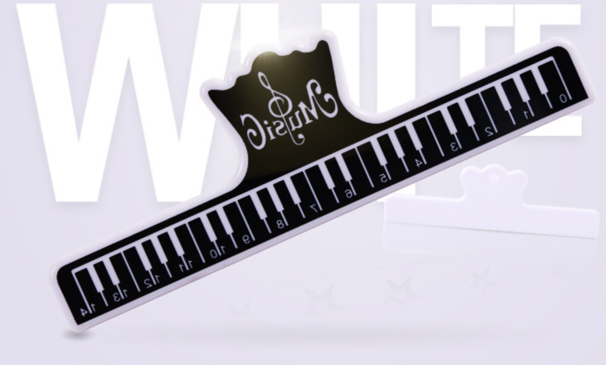 - każdy klips nutowy jest wykonany z przezroczystego, sprężystego materiału akrylowego, który pozwala umieścić stronę książki muzycznej na górze i przeczytać ją wyraźnie i szybko przez klips