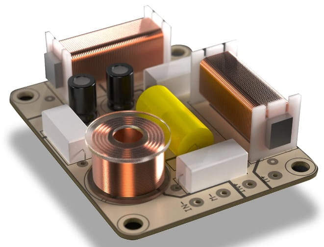 Głośnik centralny Tesi 7 korzysta z zaprojektowanej od nowa i wysoce zoptymalizowanej zwrotnicy. Topologia obwodu, liczba zastosowanych komponentów i ich parametry zostały starannie wyselekcjonowane do obudowy kolumny i zastosowanych w niej przetworników. Pozwoliło to zmniejszyć straty mocy oraz uzyskać wyrównane pasmo przenoszenia i niski poziom zniekształceń, przy wysokiej efektywności. Dzięki minimum impedancyjnemu wynoszącemu 4 omy kolumna Tesi 7 może współpracować z każdym wzmacniaczem.
