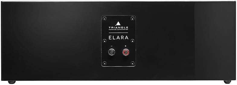 Obudowa Elary składa się z płyt MDF o grubości 18mm. Płyta frontowa została pogrubiona do 21mm, tak aby przejąć jak najwięcej energii z pracujących głośników. Wewnętrzne wzmocnienia umieszczono w strategicznych miejscach, tak aby zapobiec wzbudzaniu się niechcianych wibracji, które podkolorowują lub zakłócają przekaz dźwiękowy. Dzięki minimalistycznej stylistyce producent mógł położyć nacisk na jak najlepsze wykończenie obudowy, co objawia się użyciem wysokiej klasy lakieru piano. Mocowania maskownicy zrealizowano za pomocą magnesów, stąd front obudowy nie zakłócają żadne zbędne techniczne otwory. Ustawienie kolumny w pomieszczeniu znacząco ułatwia przedni bas refleks, który pozwala przysunąć je blisko ścian. Cokół zapewnia stabilność kolumny i odsprzęga ją mechanicznie od podłogi. Jak w przypadku każdej serii Triangle, także Elara otrzymała wysokiej jakości gniazda podłączeniowe. Jest to autorski projekt Triangle'a.