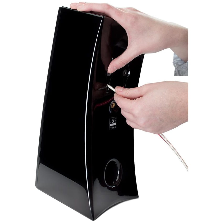 Głośniiki Motion 2i/4i, 6i/8i & FX wykorzystują wygodne zaciskane terminale, a zakrzywione wycięcia prowadzą kabel głośnikowy bez wysiłku na jego miejsce. Gumowe nakładki na terminalach są wyciągane, odkrywając otwór na końcówki bananowe. Tak proste, że podłączanie tych głośników przypadnie Ci do gustu.