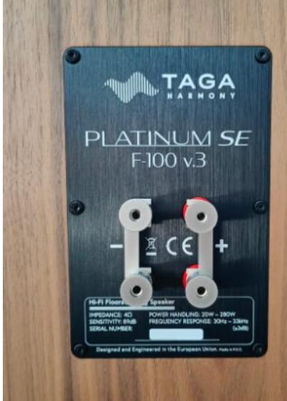 Terminale Platinum F-100 SE v.3 umożliwiają połączenia bi-wiring oraz bi-amping dla szerszej dyspersji, przestrzeni i precyzyjności dźwięku.