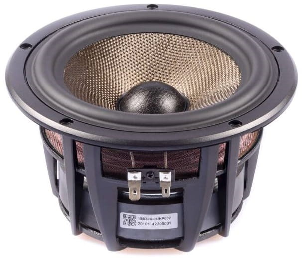 • 7 calowy (niespełna 18 cm) głośnia średnio-niskotonowy wykonany w technologii BSC (Basalt Sandwich Construction), stanowiącej najlepszy możliwy balans między sztywnością i niską masą własną, o konstrukcji zapewniającej dobre tłumienie oraz szybką i gładką responsywność w zakresie dynamiki basu.