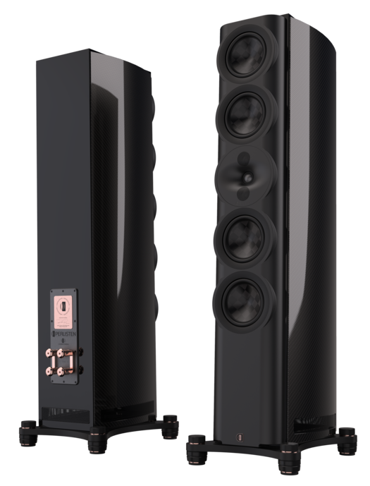Model PERLISTEN™ S7t Limited Edition zyskał też nowe wykończenie. Boki kolumn zdobią panele z błyszczącego włókna węglowego, co dodatkowo służy usztywnieniu obudowy. Co więcej, razem z firmą IsoAcoustics opracowano absolutnie innowacyjny system izolacji drgań. Dzięki nowym nowym nóżkom kolumny są jednocześnie stabilne, neutralne ze względu na drgania, ale też nie niszczą powierzchni na której stoją.