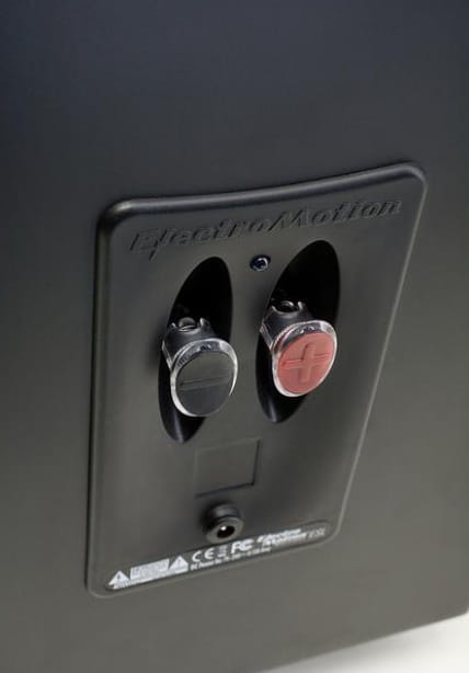 Wygodne wciskane terminale głośnikowe i zakrzywione wgłębienia pozwalają na łatwe podłączenie kabli głosnikowych. Gumowe nakładki ściąga sie w celu podłączenia złączy bananowych.. Opcjonalne kolce ETC™ również są w komplecie - można ich uzyć zamiast standardowych nóżek w celu zwiększenia stabilności na grubych dywanach, albo w celu bardziej zwartego połączenia pomiędzy głosnikiem, a podłożem. Każdy kolec został zakryty gumową, ściaganą nakładką, jeżli nie chcesz używać kolców.