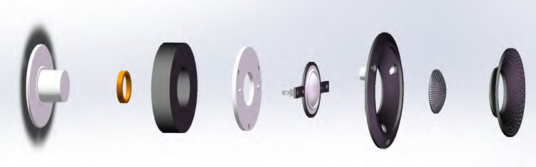 - Lżejsza membrana aluminiowa o zmienionym kształcie zapewnia szybszy i precyzyjniejszy ruch membrany, co przekłada się na bardziej dokładny i „napowietrzony” dźwięk.