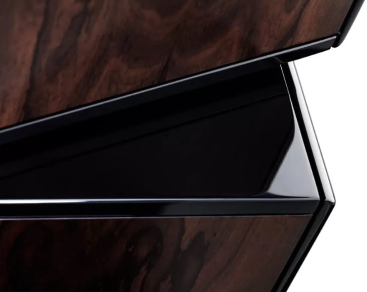 Niewidoczna dla oka jest pomysłowo ukształtowana konstrukcja usztywniająca, a także starannie dobrane oddzielne obudowy dla poszczególnych przetworników. To, co rzuca się w oczy, to ciepło ręcznie wybieranych fornirów, a także głębia i czystość prawdziwego lakieru fortepianowego.