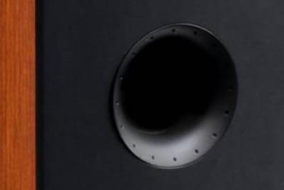 Obudowa z przednim bas refleksem pozwala dosunąć kolumnę do ściany bez szkody dla zakłócania niskich tonów.