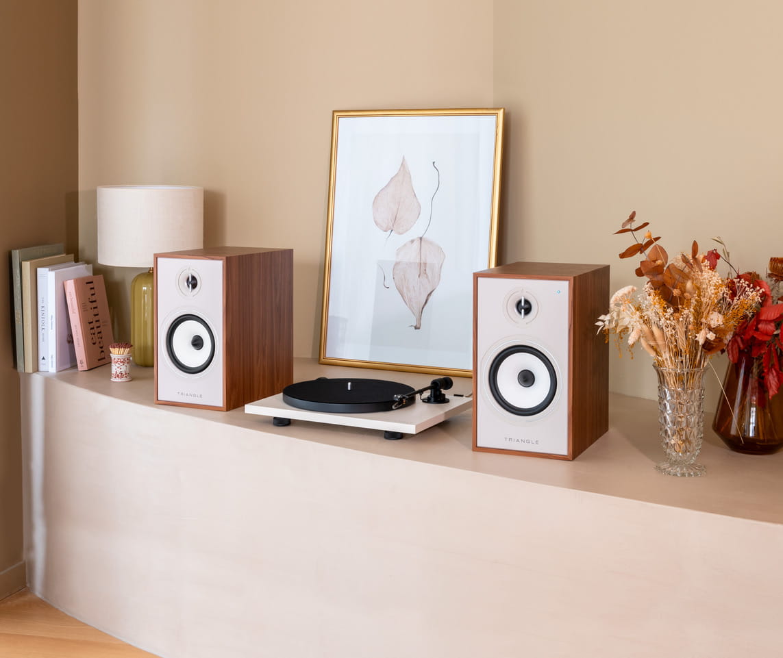 Kolumny BR02 Connect wyposażone są w wbudowany przedwzmacniacz gramofonowy, obsługujący wkładki MM. Podłącz gramofon bezpośrednio do kolumn i ciesz się prawdziwym analogowym brzmieniem podczas odtwarzania swoich ulubionych czarnych płyt w prędkościach 33 obr./min. oraz 45 obr.