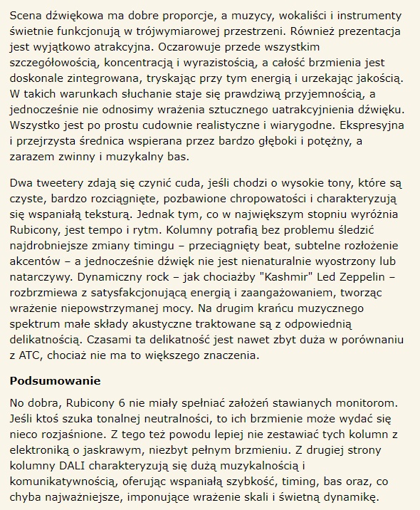 | Zalecana moc wzmacniacza | 30 - 150 W |