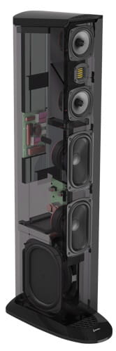 | Przetworniki | Dwa prostokątne przetworniki niskotonowe o długiej cewce, 5˝ x 9˝ Dwa płaskie, prostokątne radiatory infradźwiękowe, 7˝ x 10˝ Dwa przetworniki nisko/średniotonowe typu MVPP™, 4-1/2" Przetwornik wysokotonowy High-Velocity Folded Ribbon - HVFR™ |