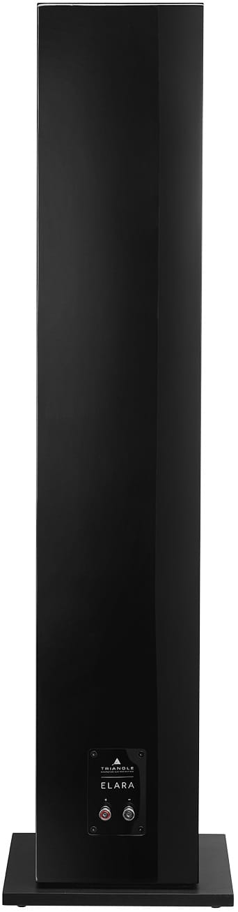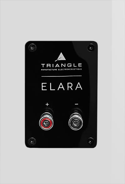 Obudowa Elary składa się z płyt MDF o grubości 18mm. Płyta frontowa została pogrubiona do 21mm, tak aby przejąć jak najwięcej energii z pracujących głośników. Wewnętrzne wzmocnienia umieszczono w strategicznych miejscach, tak aby zapobiec wzbudzaniu się niechcianych wibracji, które podkolorowują lub zakłócają przekaz dźwiękowy. Dzięki minimalistycznej stylistyce producent mógł położyć nacisk na jak najlepsze wykończenie obudowy, co objawia się użyciem wysokiej klasy lakieru piano. Mocowania maskownicy zrealizowano za pomocą magnesów, stąd front obudowy nie zakłócają żadne zbędne techniczne otwory. Ustawienie kolumny w pomieszczeniu znacząco ułatwia przedni bas refleks, który pozwala przysunąć je blisko ścian. Cokół zapewnia stabilność kolumny i odsprzęga ją mechanicznie od podłogi. Jak w przypadku każdej serii Triangle, także Elara otrzymała wysokiej jakości gniazda podłączeniowe. Jest to autorski projekt Triangle'a.
