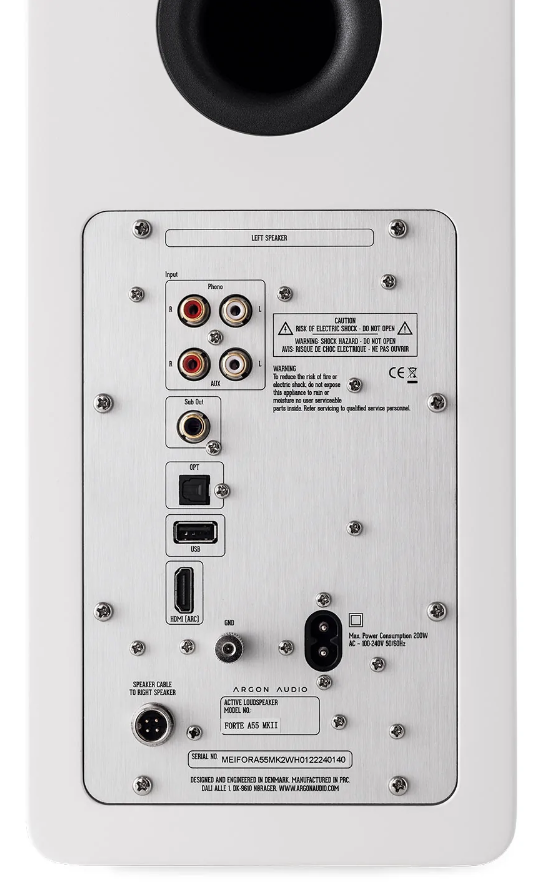 FORTE MK2 posiada wejście HDMI ARC, co oznacza, że w końcu możesz wyrzucić tani plastikowy soundbar pod telewizorem i uzyskać prawdziwy dźwięk stereo, bez kompromisów w zakresie łatwości obsługi. Wystarczy podłączyć głośniki FORTE MK2 za pomocą kabla HDMI do wyjścia HDMI ARC w telewizorze i gotowe! Teraz otrzymasz prawdziwy dźwięk hi-fi bezstratnie przesyłany z telewizora, głośniki będą się automatycznie włączać i wyłączać wraz z telewizorem, a nawet możesz użyć pilota do telewizora, aby kontrolować głośność głośników - to takie proste. Oczywiście jest też połączenie Bluetooth, jeśli chcesz po prostu posłuchać jakichś słodkich utworów. Wystarczy sparować telefon, tablet lub inne urządzenie i można zaczynać. Wysokiej jakości połączenie Bluetooth aptX HD zapewnia imponującą czystość dźwięku; w zasadzie jest to tak samo dobre jak jakość CD. Jest też kilka portów plug-and-play do podłączenia odtwarzacza płyt, zewnętrznego streamera lub czegokolwiek innego. W zestawie znajdują się kable głośnikowe i zasilające - wystarczy tylko znaleźć gniazdko elektryczne.