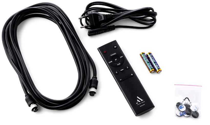 W zestawie 5-metrowy kabel głośnikowy i pilot