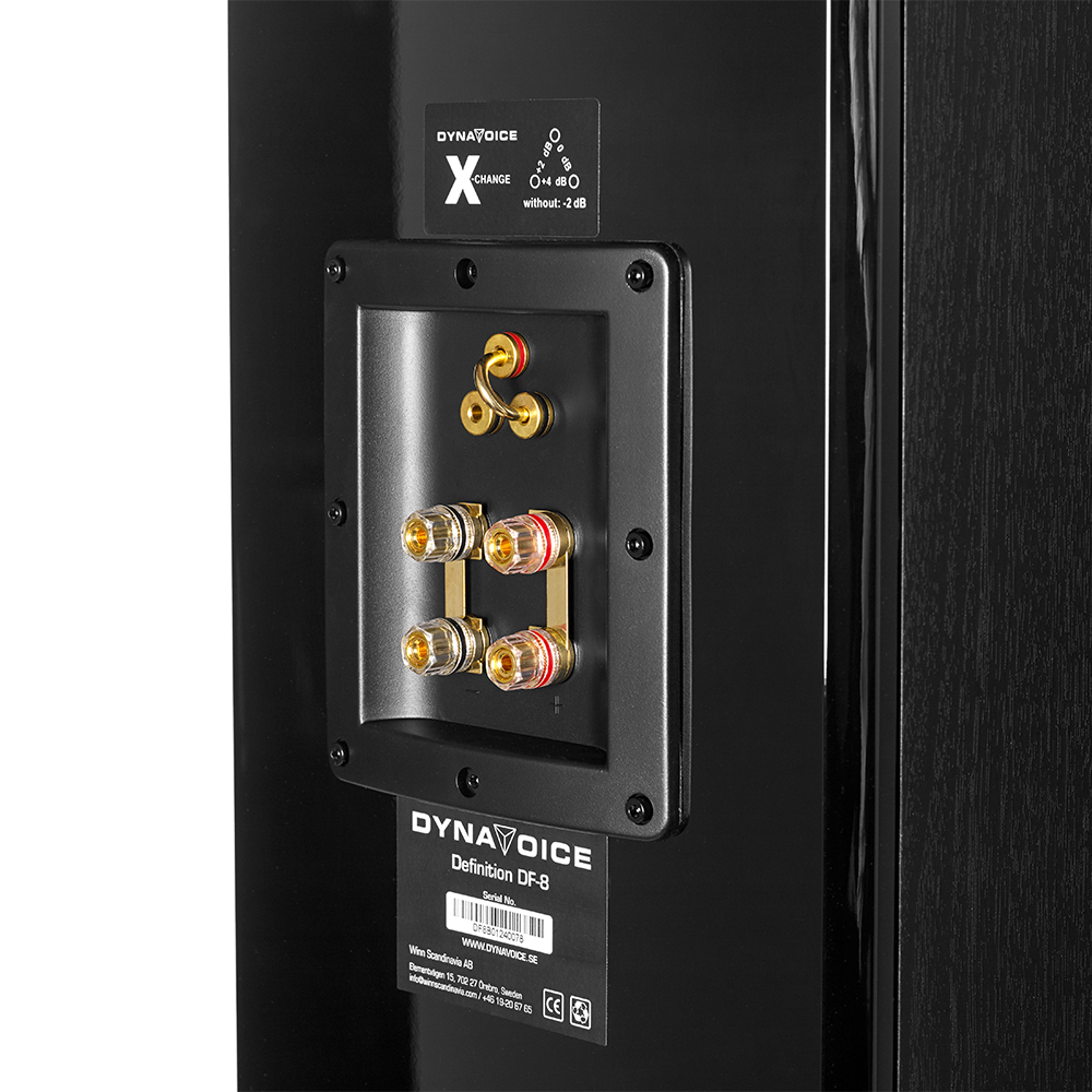 Dynavoice Definition DF-8 - to klejnot koronny wśród głośników podłogowych. Dwa 8-calowe głośniki niskotonowe, 6,5- calowy głośnik średniotonowy i podwójne głośniki wysokotonowe, wszystkie umieszczone w solidnej obudowie, tworzą głośnik o wyjątkowo szczegółowym i mocnym dźwięku. Aby zagwarantować stabilność i kontrolę w tonach o niskiej częstotliwości, użyty jest kuloodporny Kevlar w głośnikach niskotonowych, o cienkim, lekkim materiale, który usztywnia stożek, jest bardziej wrażliwy na mikrodetale. Kosz jest odlany z aluminium, dzięki czemu głośnik niskotonowy jest jeszcze bardziej stabilny. Na pozłacanym Bi-wire umieszczono wspornik, który pozwala dostroić środek pasma. Możesz wybrać pomiędzy -2dB / 0 dB / +2dB/ +4dB, a natychmiast zauważysz różnicę w charakterze dźwięku.