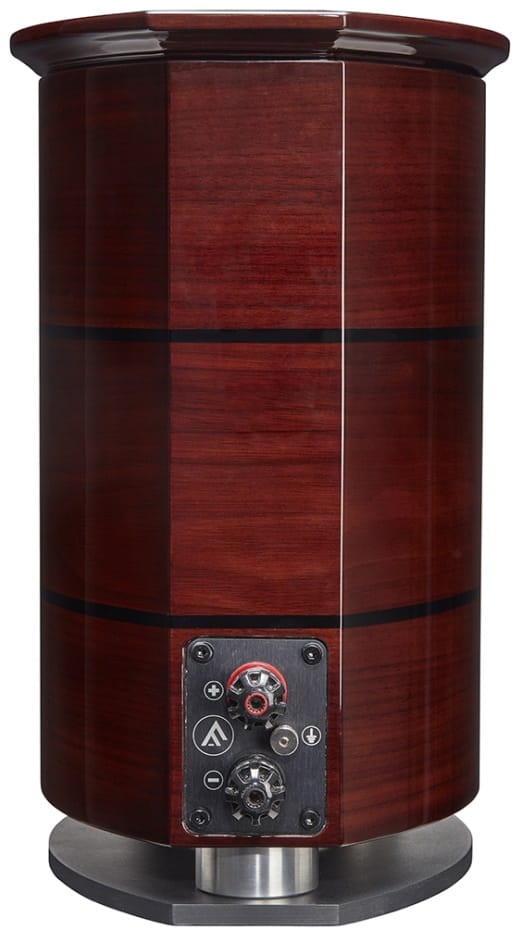 - ręcznie wykonana obudowa wsparta jest na cokole wykonanym z aluminium, w którym znajduje się najnowocześniejszy dyfuzor BassTrax LF