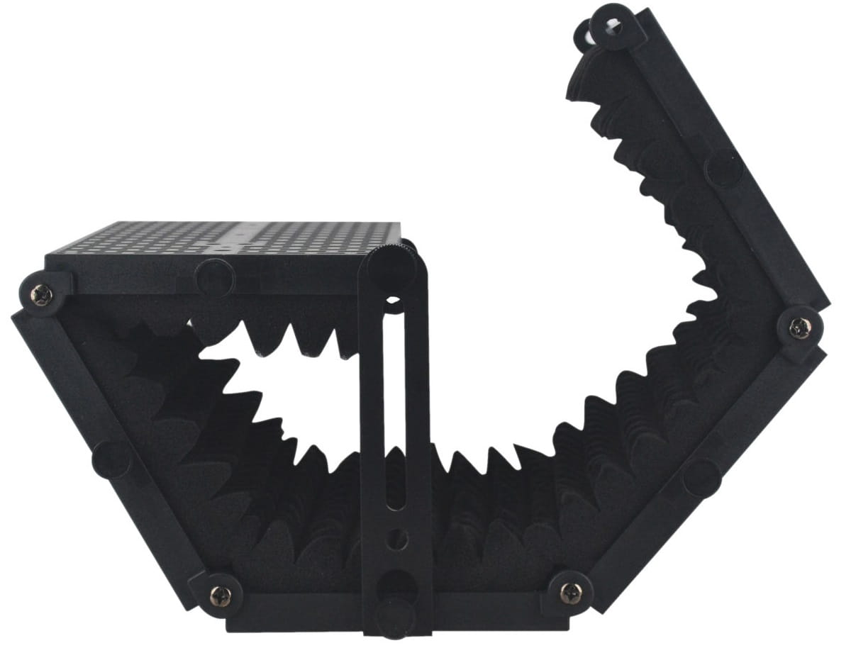 Ze względu na swoją niewielką masę oraz składaną konstrukcję z tworzywa, staje się, przenośnym rozwiązaniem na wszystkie bolączki niededykowanych pomieszczeń nagraniowych. Mikrofon można zamontować bezpośrednio na podstawie uchwytu lub przykręcić do koszyka antywibracyjnego (dostępnego w naszym sklepie). Jest to niezbędny produkt by móc przejść na wyższy poziom nagrywania niewielkim kosztem. Poza walorami dźwiękowymi warto pamiętać o sprawach wizualnych. W przypadku nagrań filmowych np. Youtube, istotne jest również by konstrukcja nie wprowadzała żadnych blików świetlnych. Dzięki odpowiedniej farbie antyrefleksyjnej i kolorze czarnym konstrukcji niwelujemy tego typu problemy niemal do zera. Próżno szukać podobnych rozwiązań na rynku w danym budżecie.