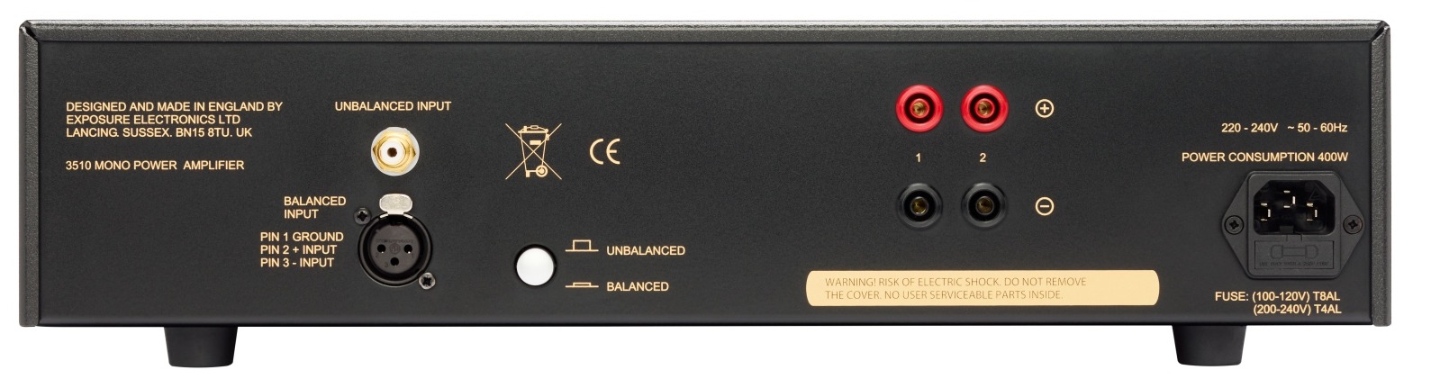 Monobloki Exposure 3510 dzielą konstrukcję obwodu z referencyjną serią 5010. Przewymiarowane i niestandardowe transformatory toroidalne oraz tranzystory bipolarne zapewniają bezproblemowe wytworzenia mocy 100W na kanał przy 8 omach. Urządzenia zostały zbudowane zgodnie z klasyczną koncepcją DC (Direct Coupled) w celu maksymalnego uproszczenia ścieżki sygnałowej oraz poprawy przetwarzania niskich tonów