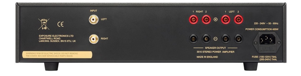 Końcówka mocy stereo Exposure 3510 wyposażona jest w transformator toroidalny, konsumujący 400W oraz w wysokiej klasy kondensatory filtrujące o bardzo dużej pojemności. Urządzenie zostało zbudowane zgodnie z klasyczną koncepcją DC (Direct Coupled), w celu maksymalnego uproszczenia ścieżki sygnałowej oraz poprawy przetwarzania niskich tonów