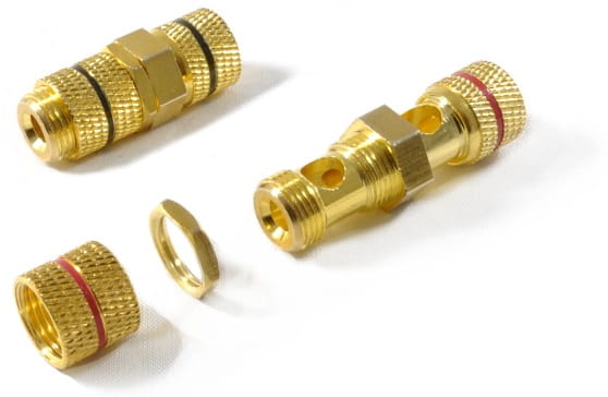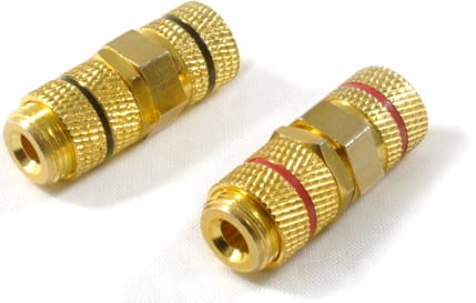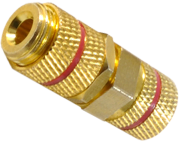 Łącznik bananowy sygnowany logiem prestiżowej firmy Prium. Pozłacany łącznik bananowy gniazdo-gniazdo, do wykorzystania w ramkach naściennych lub wzmacniaczach/amplitunerach. Zacisk oznaczony kolorem.