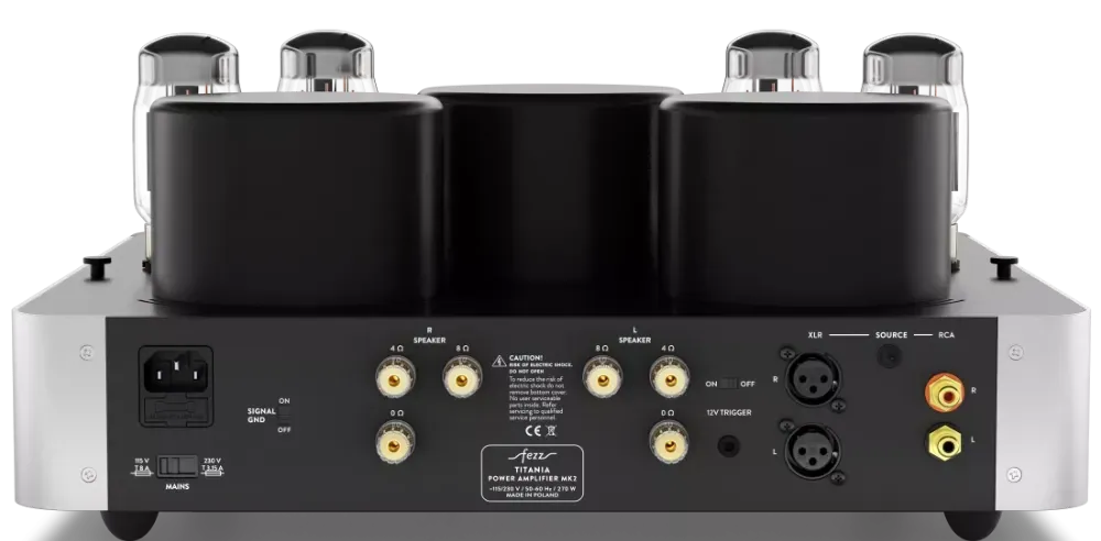 Titania Power Amplifier MK2 to nowa generacja lampowej końcówki mocy, zaprojektowana od podstaw z wykorzystaniem całkowicie nowej architektury układu. Modernizacja objęła zarówno stopień wejściowy, jak i sterujący, co przełożyło się na wyższą stabilność pracy, większą rezerwę dynamiki oraz bardziej precyzyjne panowanie nad sygnałem.