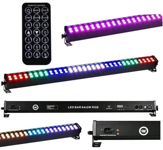 LIGHT4ME LED BAR 64x3W RGB to bez wątpienia jedna z ciekawszych propozycji zdalnie sterowanego liniowego oświetlacza. Dwa rzędy 32 diod, szeroki kąt świecenia wynoszący 40°, funkcja stroboskopu, a także żywe i nasycone kolory odwzorowywane na oświetlanej powierzchni tworzą z niego doskonałe oświetlenie sceniczne. Belka LED znakomicie sprawdza się podczas koncertów live, a także w dyskotekach i klubach muzycznych. Jest też świetnym narzędziem realizującym oświetlenie dekoracyjne na wszelkiego typu imprezach okolicznościowych, galach i eventach.