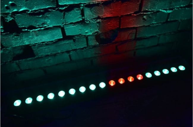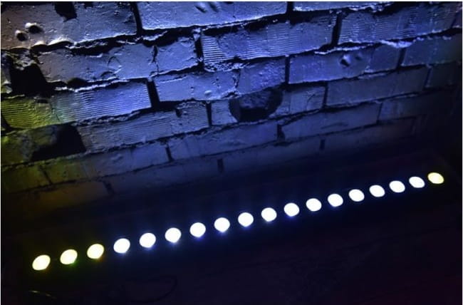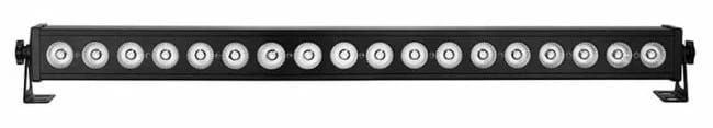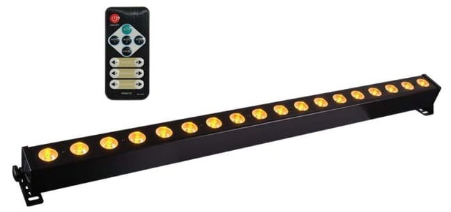 - uniwersalna, smukła listwa LED typu wash bar z funkcją Pixel Control oraz możliwością sterowania za pomocą bezprzewodowego pilota, wyposażona w 18 wysokiej jakości diod o łącznej mocy 72 watów, operujących w kolorach czerwonym, zielonym, niebieskim i białym