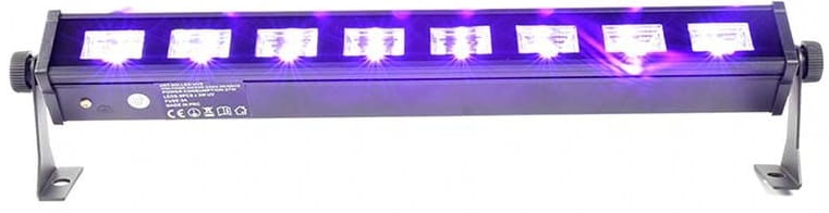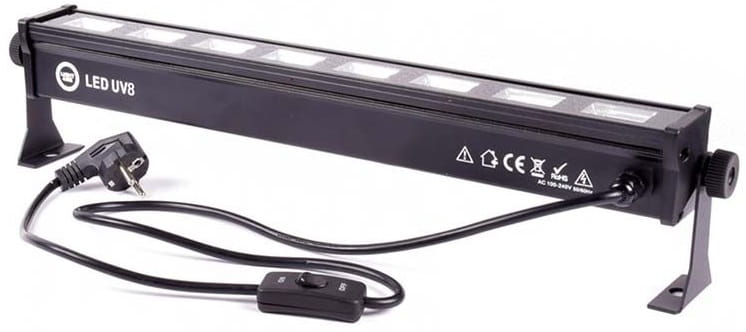 Light4Me Led Bar UV 8 to profesjonalna, solidnie wykonana, a jednocześnie lekka i bardzo mobilna listwa oświetleniowa UV, wyposażona w osiem wydajnych, 3-watowych diod LED operujących światłem ultrafioletowym, 2 uchwyty montażowe pozwalające na jej pracę w pozycji stojącej lub wiszącej, a także wygodny zintegrowany przewód zasilający. Sprawdza się na tanecznych parkietach, DJ party, w klubach disco, podczas prywatek, domówek, a także na jako wewnętrzne oświetlenie architektoniczne w dekoracji światłem. Może również stanowić element oprawy oświetleniowej dla zespołu lub DJ-a.