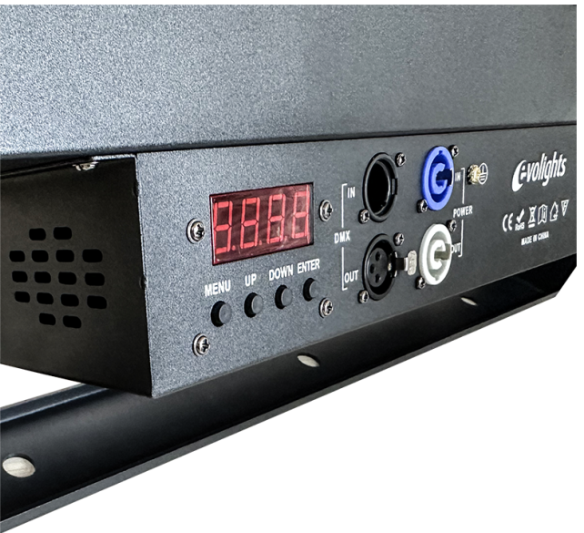 Evolights Lumen Pix Bar charakteryzuje się przede wszystkim bardzo łatwą i intuicyjną obsługą ✅. Listwa ta może pracować samodzielnie lub być kontrolowana, dlatego świetnie sprawdza się na każdej imprezie. Panel sterowania składa się z wyświetlacza LCD oraz 4 przycisków. Za ich pomocą możemy wprowadzać zmiany w ustawieniach menu, ustawić kolory statyczne belki lub wybrać jeden z 4 interesujących nas trybów pracy: